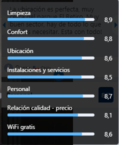 ¿Notáis la diferencia entre la valoración de un Wifi gratuito y uno de pago? Aún Booking.com no tiene en cuenta este parámetro para hacer la media de la valoración global del hotel y solo utiliza los 6 primeros atributos, pero en cualquier momento podría incluirlo con graves consecuencias para algunos hoteles que verían como un servicio general bueno se ve rebajado por incluir el Wifi de pago.